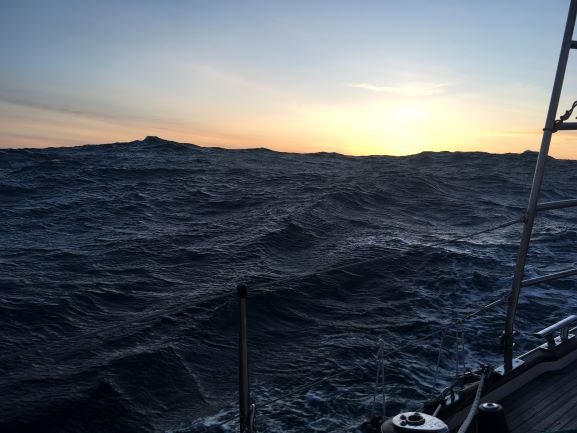 Wednesday 4am We passed S of Cape of Good Hope about one hour ago. Day just breaking - first light. Waypoint due S of Cape Agulhas is under 65 miles away, so should be passed later today.