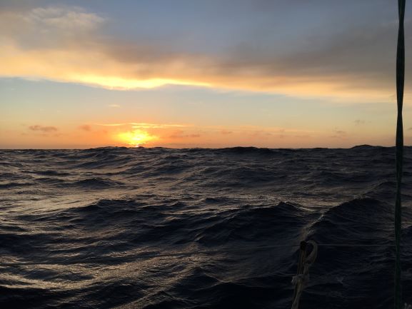 Had a lovely day on Friday - good to be underway - in bright sunshine a lot of the time, with occasional cloud - enjoyable sailing but seas big and quite close - so some steep faces coming onto our stern... a lovely sunset, as well. Overcast Saturday but some sun in middle of day.