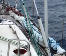 I forgot to mention my latest problem - the third reef line clutch has broken - there's a spring missing and a metal part is sticking out - so I've had to abandon using that clutch for the third reef. Fortunately, I can move a couple of other lines (mainsail outhaul and pole downhaul) around to use one of their clutches for the third reef line - essential to have the third reef line through a working clutch and the mainsail outhaul already has a jammer at the forward boom end which is working fine. I'm going on deck now to see about the pole downhaul line on the starboard side (one of the lines involved) - it would be good if I could disentangle it from my lashed genoa on the side deck.