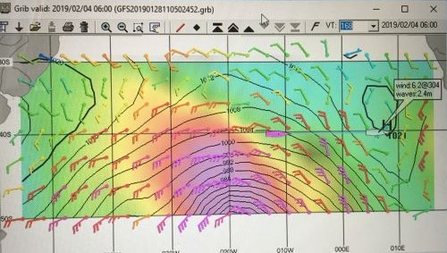 Position & weather report, for 1900 GMT, posted to Winlink.org and