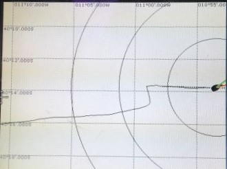 10:50am Well, that didn't work! Just lay there thinking about mainsail and trysail 'challenges' and worrying about which way we were heading. Then saw we were headed NNW - so got up to try to get us headed in a vaguely East-ish direction - tried gybing around again but we headed towards Gough Island (now still only 11mls away to SW) so, again, that was not good. Finally, we're headed NNE at 1.7kt.