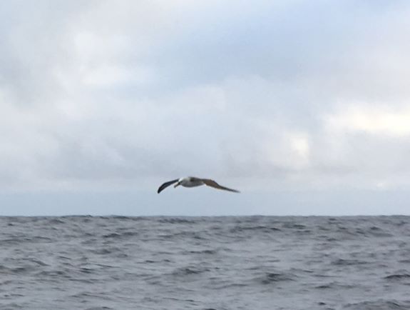 Just when battery went dead, a young albatross came and landed in the sea very close by - looked at me, on deck working, with interest....