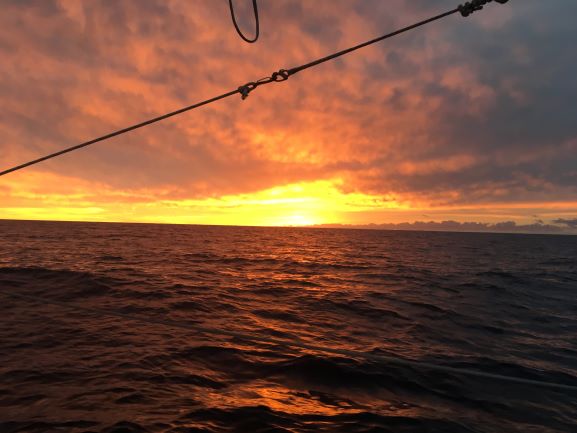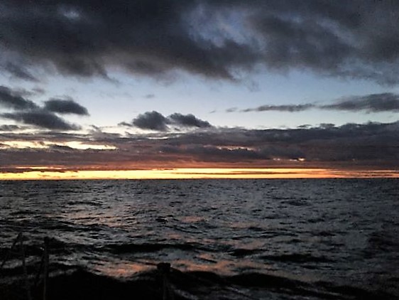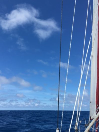 6am Had long discussion with Peter on weather outlook - need to keep heading due E for time being so as to avoid stronger winds on edge of Low passing by to S. Will give short window to work on sail before stronger winds of Low come along and then winds will die back down again, giving possibility of sail repair later, in lesser seas also. Another Low coming on 25th so might not have time to do all the repair needed - will have to see how that goes at the time.