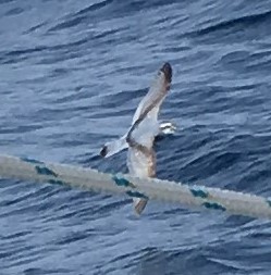 Later: Great Shearwater circling us with rapid wingbeats. Very few other birds - but a Black-bellied storm petrel (photo) is also circling the boat quite often - sometimes two or three of them close by - they like the disturbed water we produce.