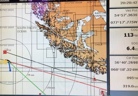 Distances (at 1900Z): Cape Horn LH: 620 n.ml. to SW; Falklands: 193 n.ml. to SW