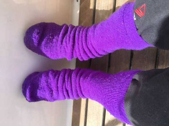 1pm Lovely, relaxing, sunny day with an interesting clpudscape - a breather in between the frequently stronger conditions. Seas still quite high (4-5m) - they keep on coming. They're smoother but still roll us around often. Cold air - put some well-loved ski socks on as over-socks to try to keep my feet, and toes in particular, warm. Helps to warm them up in the sleeping bag often.