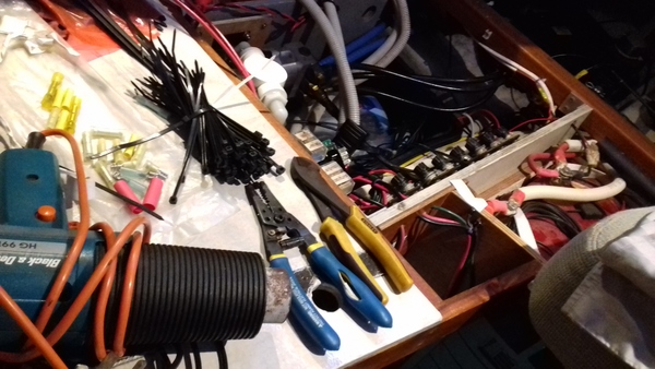 Jobs are still ongoing and any boat in constant use invariably has breakdowns and repairs adding in to the previous list. I’m presently re-wiring the solar panels’ circuits with tinned wire (the untinned wire I found in use in part of the circuits is totally black with oxidation). I replaced my Icom tuner on Thursday (my 75th birthday present to myself!) - many thanks to Icom America for their wonderful support. They’re sending a new control cable with fresh connectors so I can connect the tuner to my Icom M801E radio. I looked to see why one of my autopilots is not driving the rudder at all - the drive arm (ram) probably needs attention/servicing. I have to investigate further a small fuel transfer pump problem - likely to be an impellor that needs changing, all bungies on deck, holding blocks etc in place, need replacing - and there are many other items still on the list to be dealt with, as well as items still to be bought - mainly spares to carry onboard.