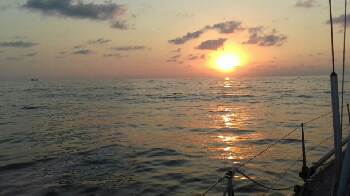 Cargo vessel 'Atlantic Rainbow' overtook us well off the coast heading NW towards the sunset, just as we are.