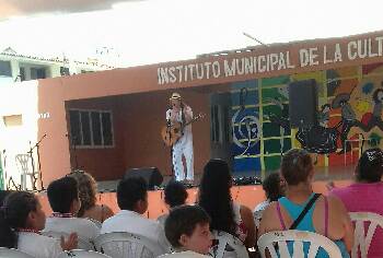 Views at anchor... Relaxing with Stuart & Karen at the 'Galeano' after the Children's Concert ...evening 'gala' concert and meal... beach concert... Jose Luis at 'La Sirena. Lots of varied, good music!</>