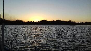 Peaceful sunset and evening, after lots of noisy Mexican beach fun reaching out to the boat.