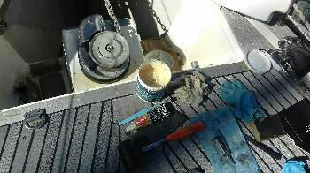 Dealt with boat speed impellor this afternoon. Took quite a time but at least now the wind info will be correct - or nearly so! The Propspeed I painted on the impellor itself worked well but I should have painted inside and outside the holder as well to prevent the growth there that clogged it up. Also replaced some damaged screws supporting one of the 'gate' stanchions - another good job finally done!