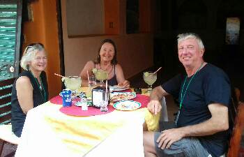 Avoiding that hassle, I decided to snorkel and clean the hull instead - the several fishes under the boat increased in number rapidly as they enjoyed the food I released for them. A Margarita onshore was a welcome reward for my lengthy efforts, with Jean and Jacinthe coming by to provide my transport to shore.